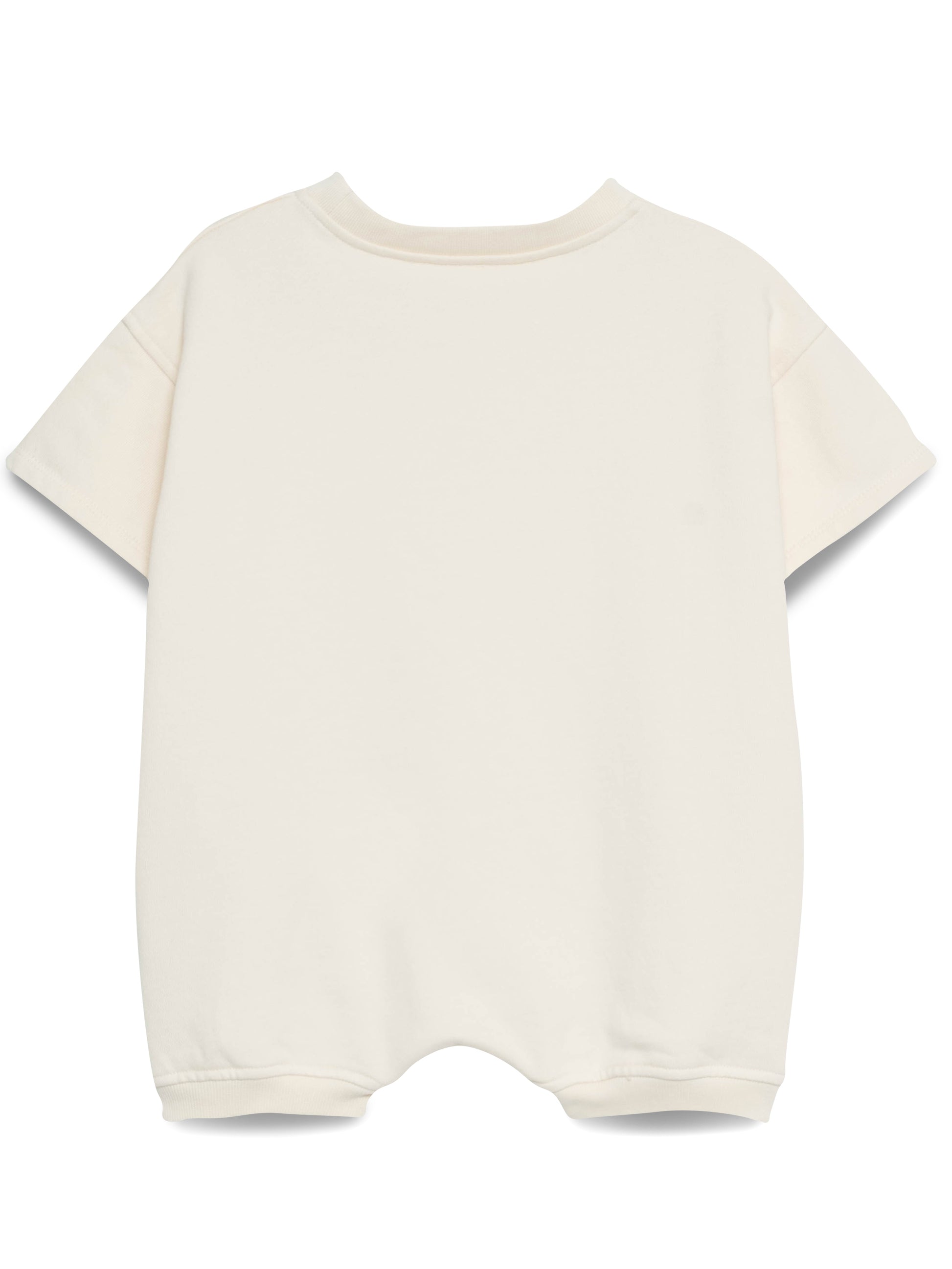 Este pelele unisex 100% algodón está diseñado para acompañarte en cada momento del día con suavidad y practicidad. Su corte oversize garantiza total libertad de movimiento, y los clips en la base facilitan y agilizan el cambio de pañal.