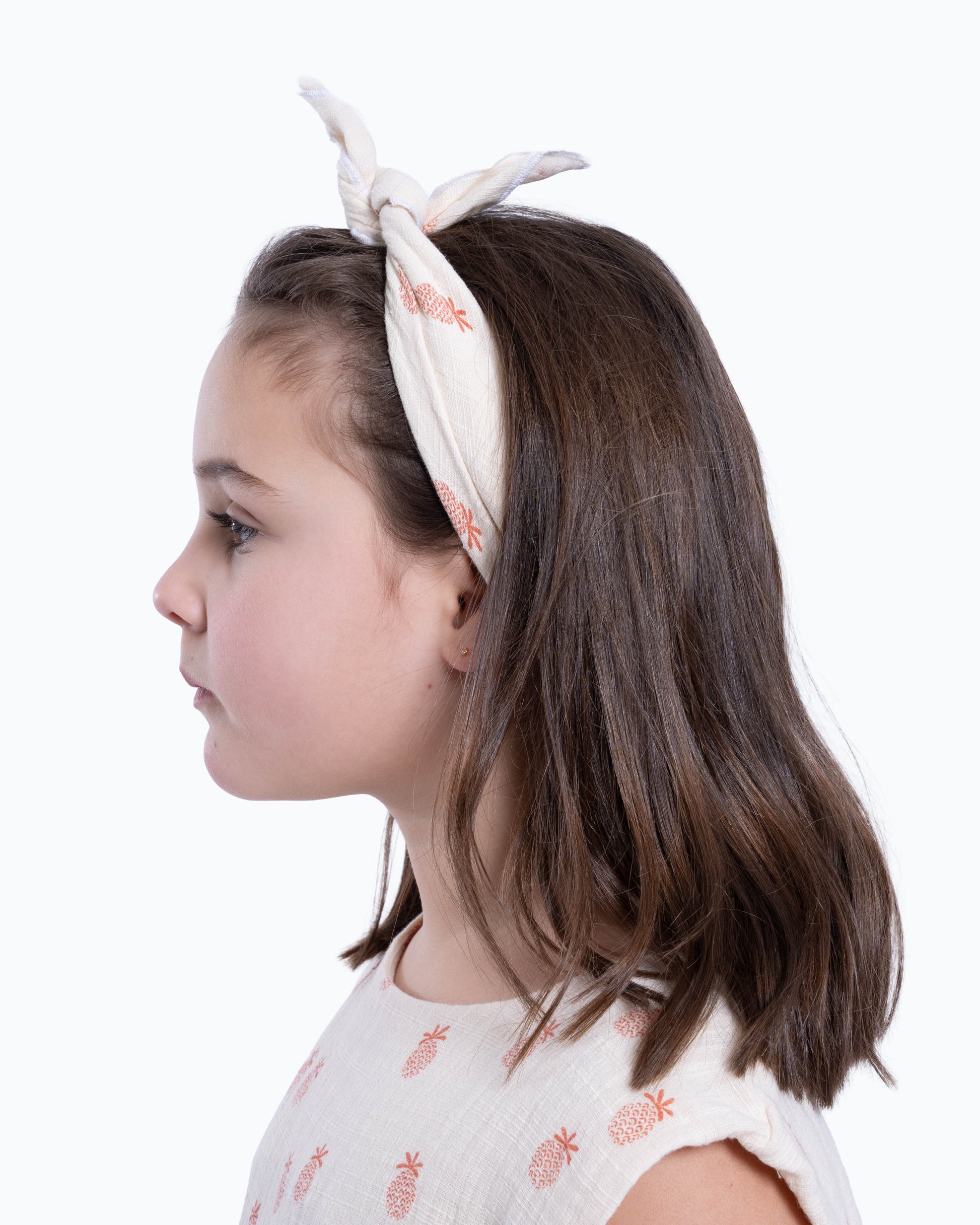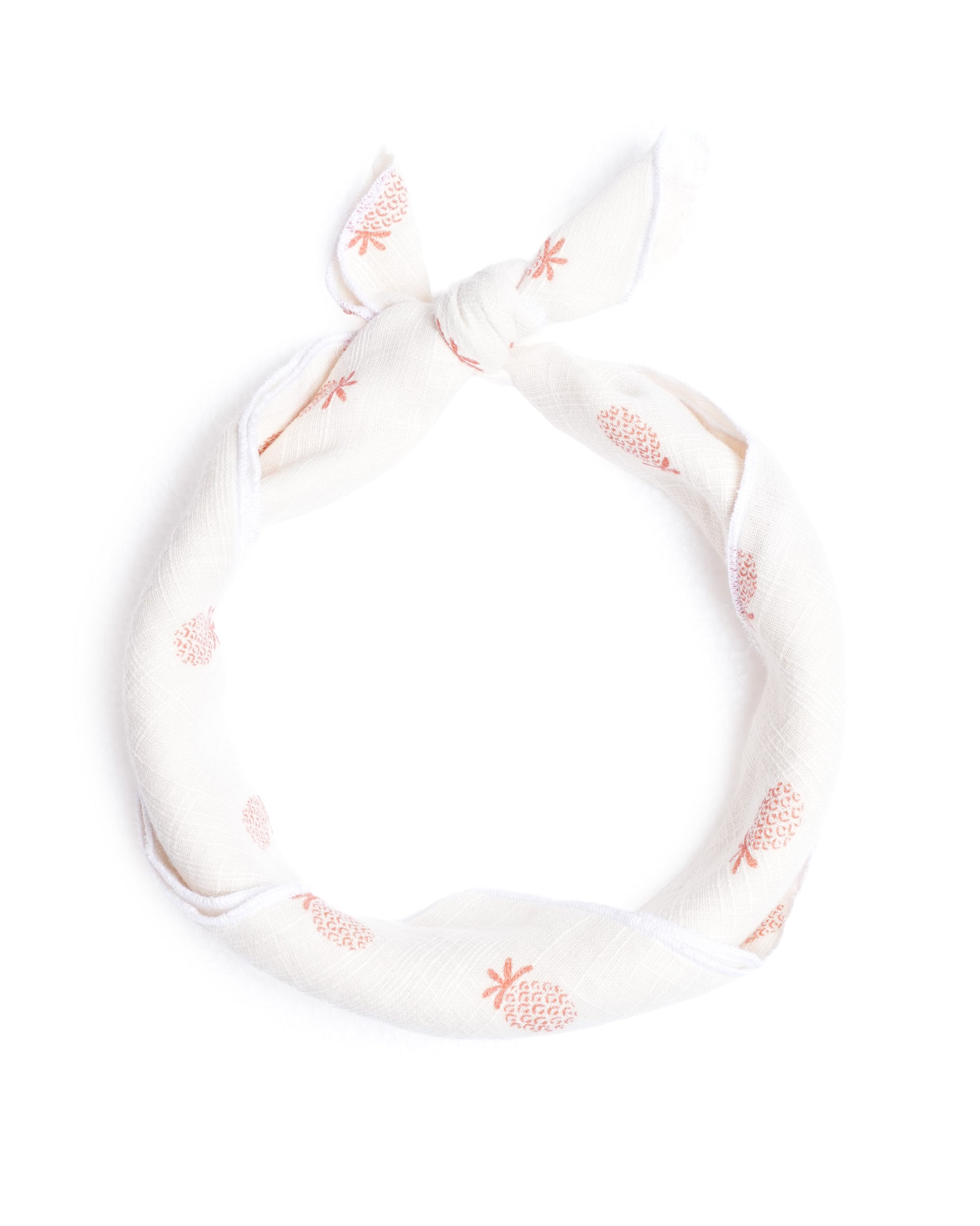 Lenço em algodão leve com padrão exclusivo de ananases, pensado para dar um toque especial aos conjuntos de primavera/verão. Pode ser usado de diferentes formas, na cabeça, ao pescoço ou até preso na mala, adaptando-se facilmente ao estilo e à ocasião.