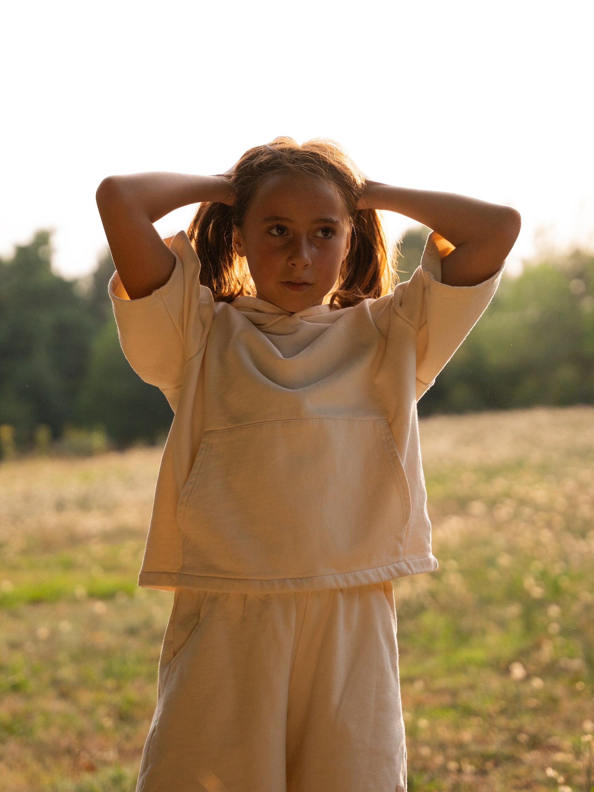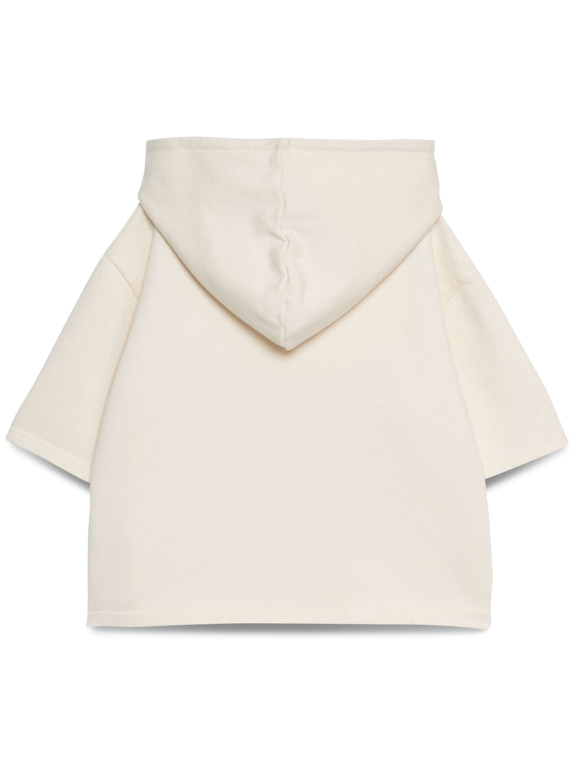 Esta sweatshirt de manga curta em 100% algodão foi criada para acompanhar o ritmo dinâmico das crianças, sem perder o estilo. O corte oversize garante liberdade total de movimentos, enquanto o capuz e o bolso frontal tornam a peça funcional e cheia de personalidade.